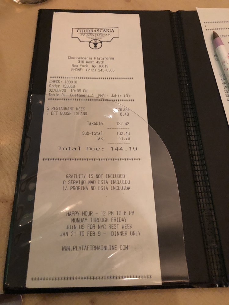 Rodizio style dinner, dessert, coffee all kinds, soft drinks, open bar ( hours limit for beverages- does not include top shelf)